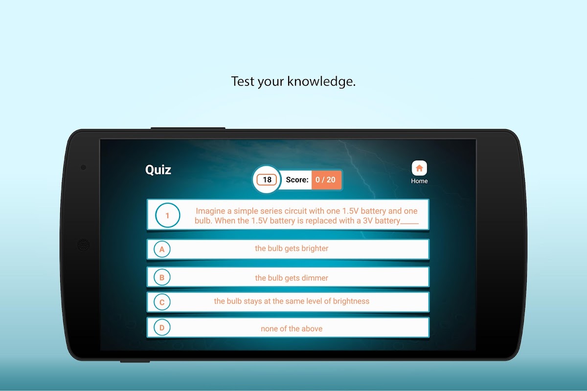 3) Quiz - An Interactive quiz to test the level of understanding about electric current, voltage and resistance.