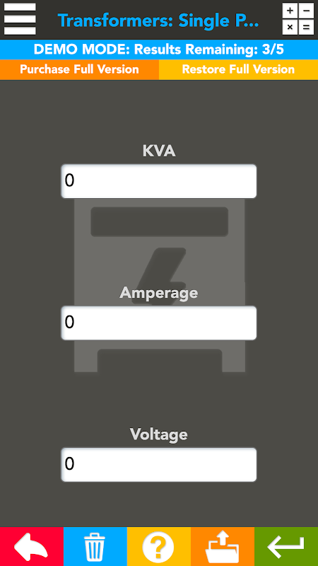 The best electrical transformer calculator on the app store! Electrical Transformer Helper is your one stop shop for transformer calculations. Calculations include: Turns, Kva, Primary and Secondary OCPD, Amperage, and much much more! This is a great tool to make quick decisions in the field or office.