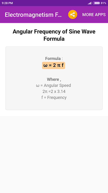 該應用程序列出了所有重要的電磁公式。這對學生節省寶貴的時間非常有用。