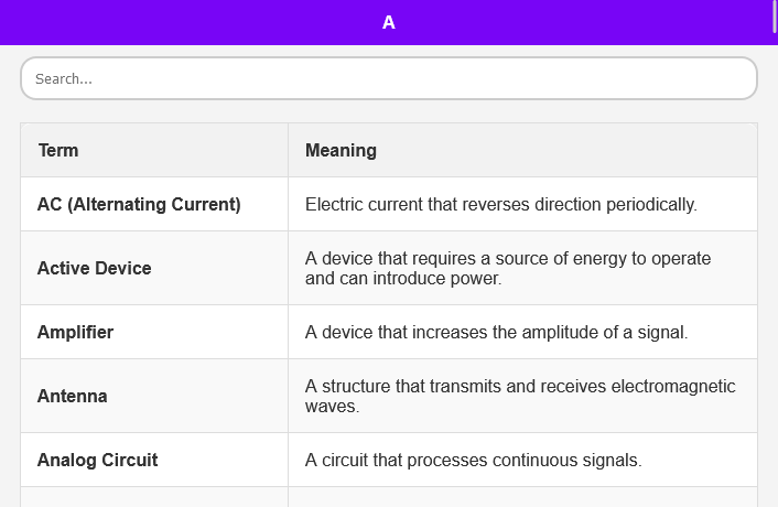 使用電子詞典應用程式解鎖電子世界。無論您是學生、專業人士還是只是技術愛好者,我們的應用程式都可以為您的所有電子相關需求提供全面且用戶友好的參考。數以千計的術語、定義和解釋觸手可及,您將擁有理解和駕馭複雜電子世界所需的一切。如果您正在尋找電子詞典應用程序,那麼您來對地方了。這個應用程式將為您提供最重要和最常用的電子術語的含義。