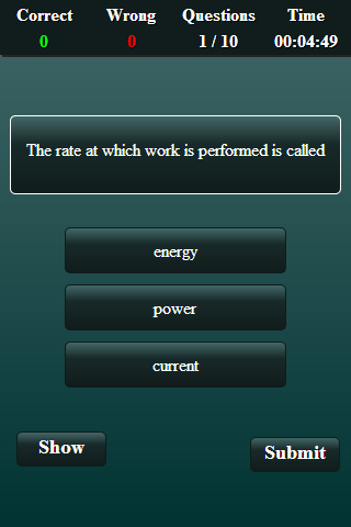 This Electronics Science testing app has been designed in the best possible manner so that the user can constantly improve his/her knowledge about the subject. This Electronics Science testing application suits for all lower, intermediate and higher levels as this application carries a combination of questions for testing the user from the basic level to the highest level. The questions in each level will be displayed randomly.