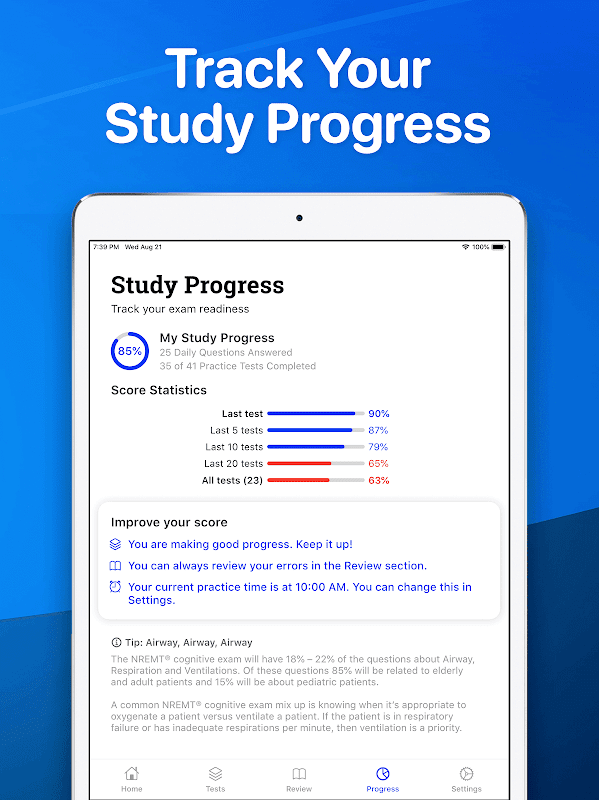 - 進度指標 - 您可以追蹤您的結果和分數趨勢