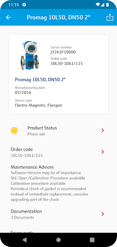 Endress + Hauser的業務應用程序使您可以快速下載特定文件,如作業指導書和技術信息E + H的現場儀表。獲得快捷方便地訪問到最新的產品信息和設備的詳細信息,例如:順序碼,可用性,備件,舊設備的後繼產品和一般產品信息。只需輸入序列號或掃描設備上的數據矩陣碼。