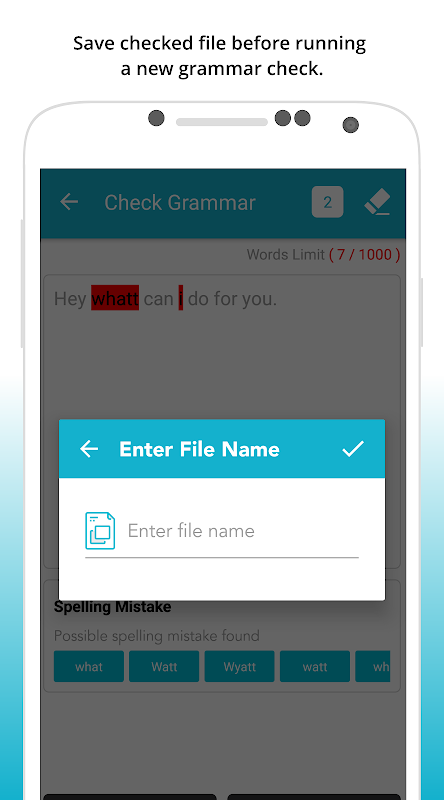 英語咒語和語法不是很複雜,犯錯誤是生活的一部分,所以你應該正常,因為語法手冊可以幫助你改善語法和正確寫作。但是,為了提高英語語言技能,你應該每天練習語法並使用這個最好的語法檢查應用程序來了解你的錯誤並錯過法術並從中學習。語法檢查器x應用程序是絕對免費和語法校正手冊的最佳替代。在這個免費的語法檢查應用程序中,您只需將文本複制並粘貼到文本框中即可檢查法術和語法。或者,您可以上傳文本圖像以運行快速語法和拼寫檢查。通過免費使用英語校對應用程序測試英語和完整語法。