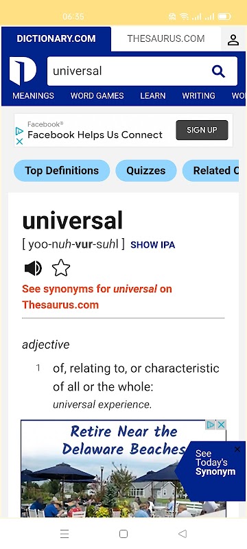 The Application presents user with a compact Dictionary and Thesaurus within the same platform, with the help of a browser platform.