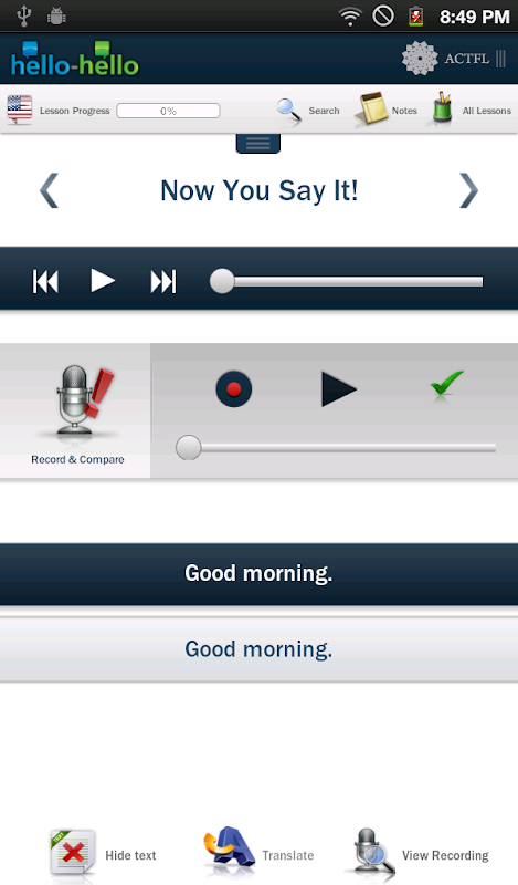 所有内容都包含在一个应用程序当中,只要你想学,就可以随时进行,运行此程序无需无线上网,也无需3G网络。有了 Hello-Hello英语 ,你可以随时随地学习课程,练习词汇,锻炼用外语交际所需的各种能力。所有课程均由母语人士朗读,保证学到正确的发音。
