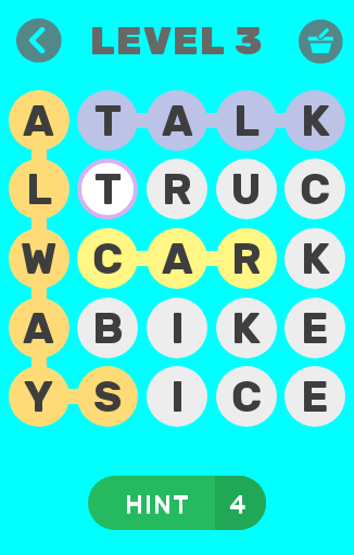 The goal is to find all the hidden words. Select the letters with your finger. To pass a level, you must find all the words listed. Improve your vocabulary, grammar and puzzle skills.