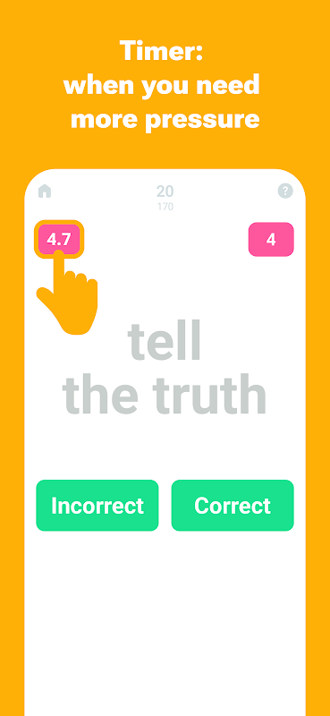 • 快速文法練習 — 30 秒或更長時間,您選擇