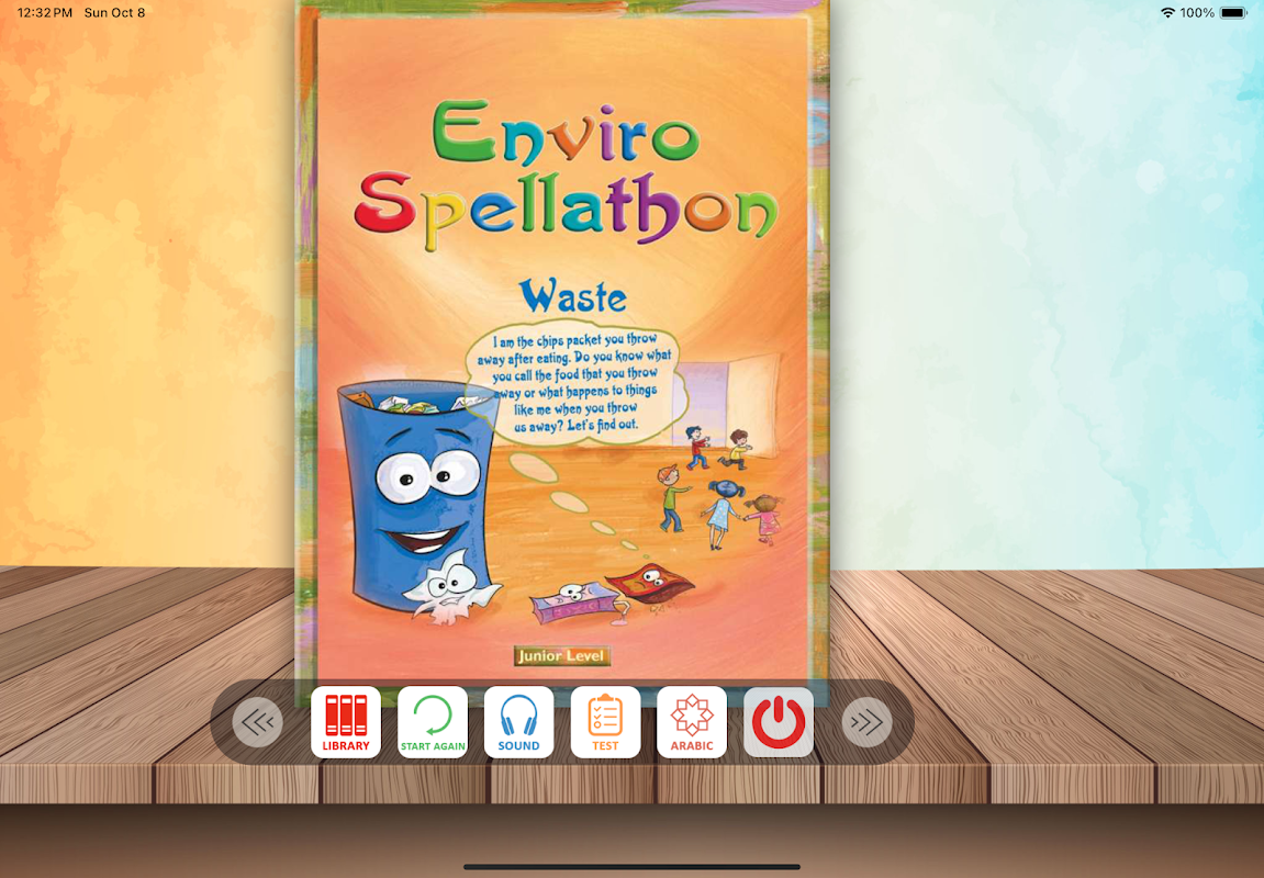 Enviro-Spellathon 應用程序適用於 5 歲以下至 13 歲的學生的七個級別