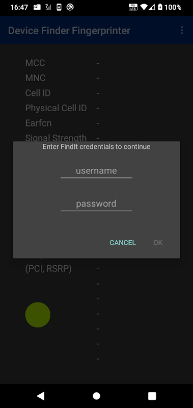 Records cellular network and GPS information and uploads to the Ericsson Device Finder service when the app is in foreground every 1 second.