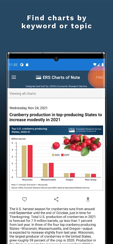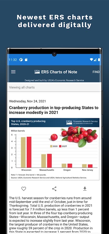 ERS Charts of Note 以簡單、用戶友好的格式呈現 ERS 研究和分析關鍵糧食和農業主題的亮點。獲取最新的注意圖表;探索及時、熱門的信息範圍;點擊鏈接了解更多詳情;保存和分享感興趣的項目;或搜索廣泛的圖表庫。