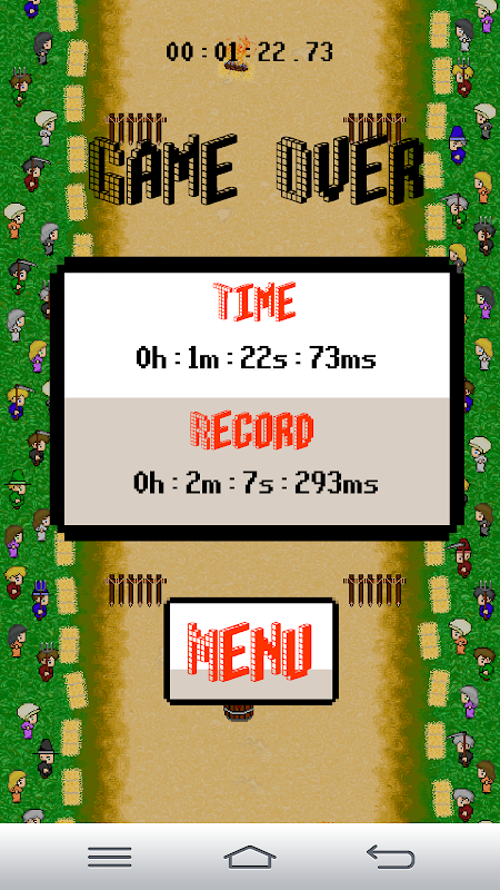 Reach as far as possible, the longer you go, the harder will be stay alive, the more objects will appear and and the villagers will have some surprise awaiting you.