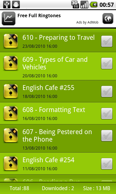 Downloading mp3s on 3G can be costly depending on your provider; using WIFI connection would be preferable in most cases. This app is not endorsed or sponsored ESL Podcast but agreed upon publishing this app. If you have technical questions about the app, please contact ImApp Soft.