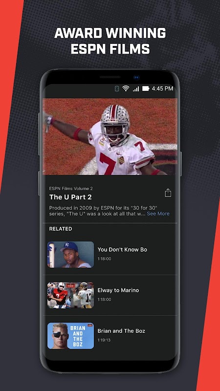 使用 ESPN 播放器,您可以隨時隨地觀看您最喜愛的體育賽事以及數千場直播和點播賽事。您還可以沉浸在我們的 ESPN 電影目錄以及四個 24/7 ESPN 電視頻道製作的一些最偉大的體育紀錄片中。