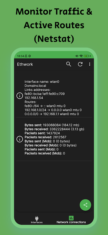 Ethwork - 簡單的 Android 應用程序,用於顯示有關係統網路介面和網路網路狀態的所有資訊。