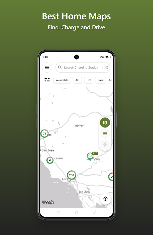 - 包含網站集群和連接埠狀態的預設地圖:地圖視圖將充電埠顯示為集群,以便更輕鬆地找到最近的充電埠。