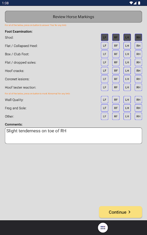 EVA:Equine Forms 应用程序包含可在旅途中完成的交互式表格,包括:
