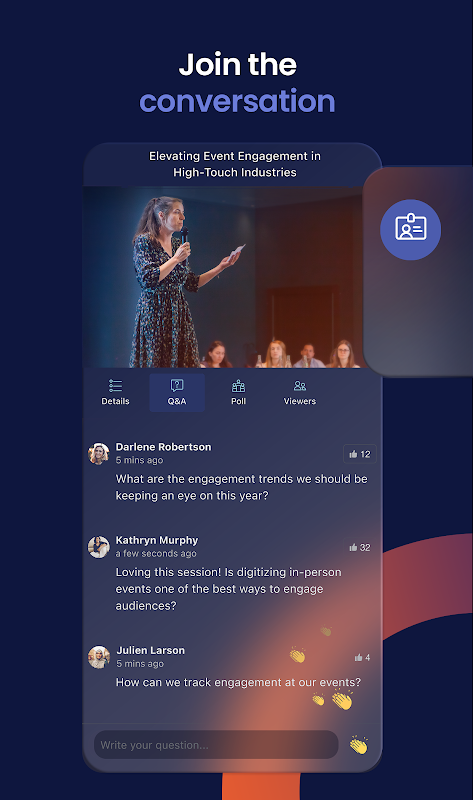 使用品牌且合規的活動應用程式舉辦真正的混合、虛擬和現場活動,並為您的觀眾提供他們喜愛的超個人化互動體驗。
