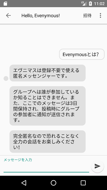 完全匿名のメッセンジャー型チャットアプリです。