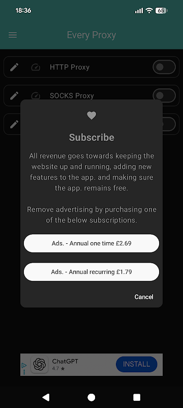Every Proxy 可讓您網路上的其他裝置透過您的手機或平板電腦路由其流量。它還可以用於共享 VPN 連線或測試網路配置。