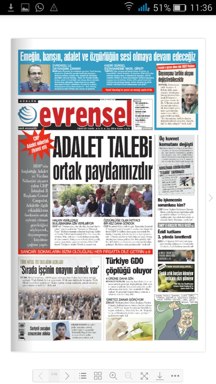 Evrensel'i e-gazete formatında okumak için de bu uygulamayı kullanabilirsiniz.