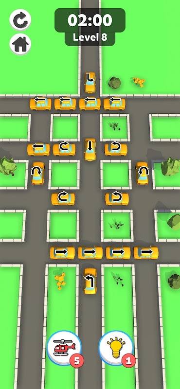 汽車被卡住了,將它們一一移動,幫助它們到達出口道路!