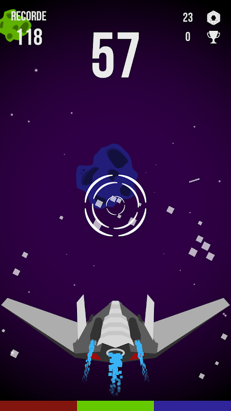 使用你的飛船的衝擊波摧毀所有顏色的小行星!