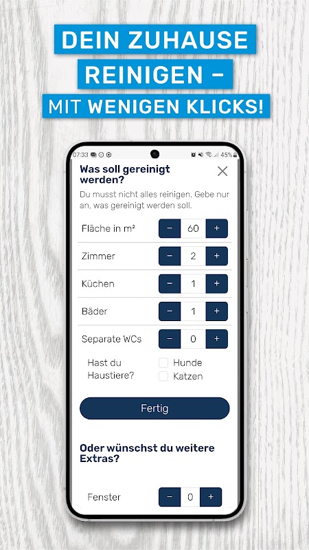 透過 ExtraSauber 應用程式向測試獲勝者預訂清潔服務。