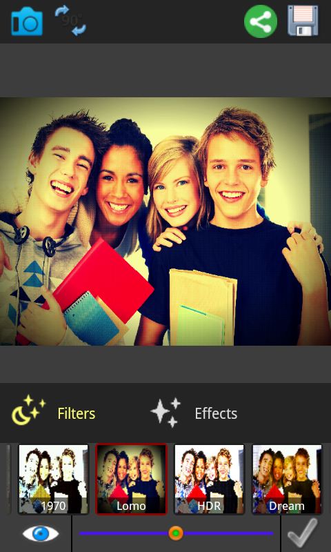 •90多個類別的獨特過濾器:''Lomo','復古','簡單音調','黑白','舊風格','冷色調','暖色調'和'藝術'。