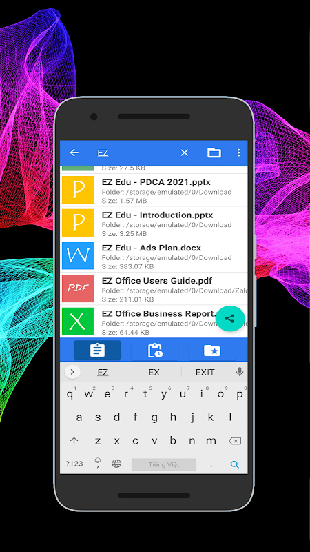 EZ Office - Word、Excel、PowerPoint 和 PDF 閱讀器 - 一種在您的設備上閱讀多種類型文檔的更快方式。它支持查看 Doc/Docx 文件、Xls/Xlsx 文件、Ppt、Pptx 文件、PDF 文件和 Txt 文件。您可以在一處列出設備上的所有文件和文檔文件。