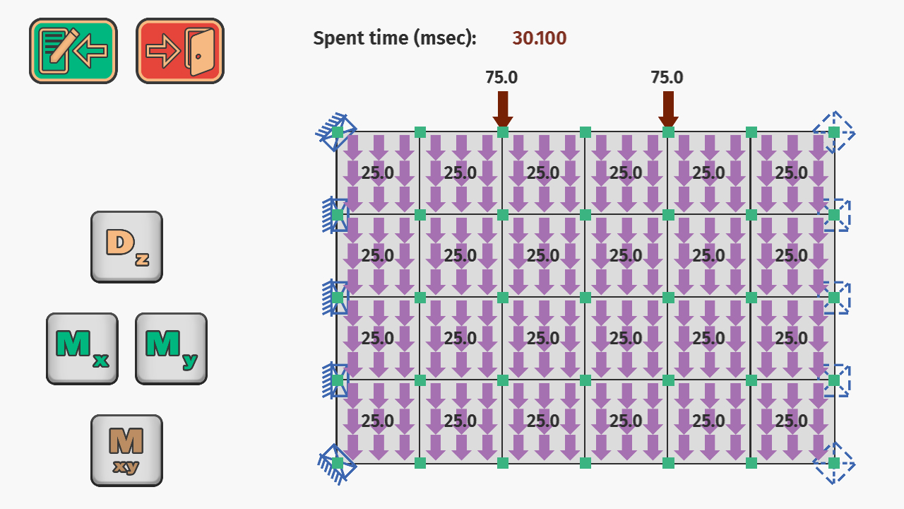 該程式可以解決諸如:軸、梁、板、牆樑等任務。所有任務都分幾個階段解決。一開始,使用者在屬性視窗中調整任務的常規參數:長度、材料、有限元素網格分割步驟等。之後,使用者進入圖表窗口,在其中施加力和支撐結構(軸除外-在那裡,不是支撐,而是調整各部分的橫截面)。因此,在計算之後,使用者會進入結果窗口,其中顯示結構中產生的變形和力(所選任務中固有的)。