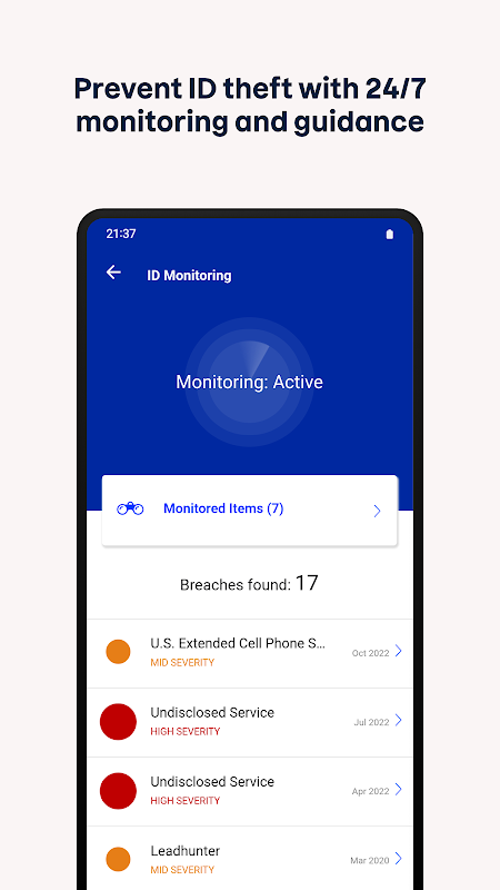 ✓ 透過 24/7 暗網監控和資料外洩警報防止身分盜竊。