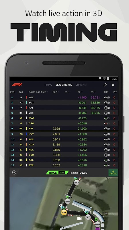 The full Live Timing features are back in a separate app available on Android phones and tablets so you can follow every twist and turn of the live races.