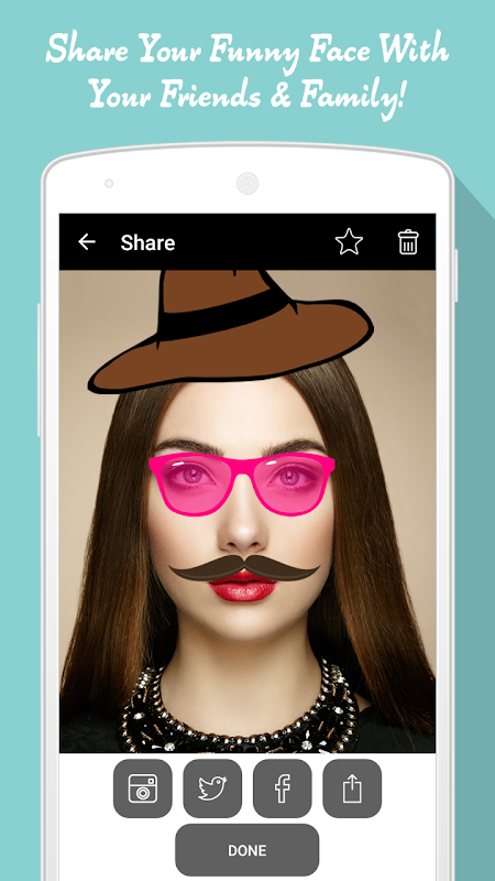 Face Changer Masquerade Camera application can makes you look like a famous character or even a super star.