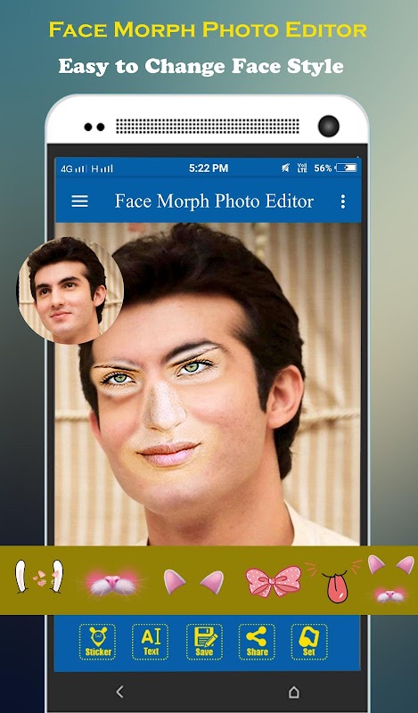 Face Morph allows you to create funny faces. Animal face creation is possible with this app.