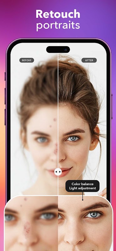 • 增強照片高達 2 倍和 4 倍。編輯模糊、陳舊、低質量和嘈雜的照片