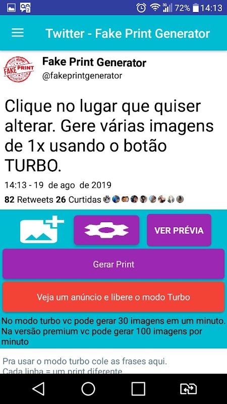 從頂級網站和社交網絡創建虛假打印或虛假對話:Facebook,Whatsapp,Twitter,Google(建議),Google(自動填充),Google翻譯,G1和背景圖片。
