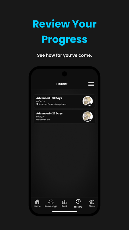 我們的應用程式會記錄你的每日堅持天數、追蹤你的進度,並頒發徽章來激勵你,從而支持你的自律之旅。
