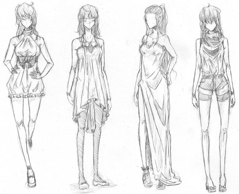 在時裝界,新的設計以手工繪製的草圖的形式呈現,在織物剪裁和縫製之前。 首先,你畫一個基本的草圖,一個身體模型(croquis)的基本形式,形成一個草圖的基礎。 關鍵是你沒有繪製一個現實的身體形狀,而是用空白的畫布來展示裙子,裙子,襯衫,配飾和所有你的作品。 添加顏色和其他細節,如花邊,襯里和按鈕,以幫助您說明想到的想法。