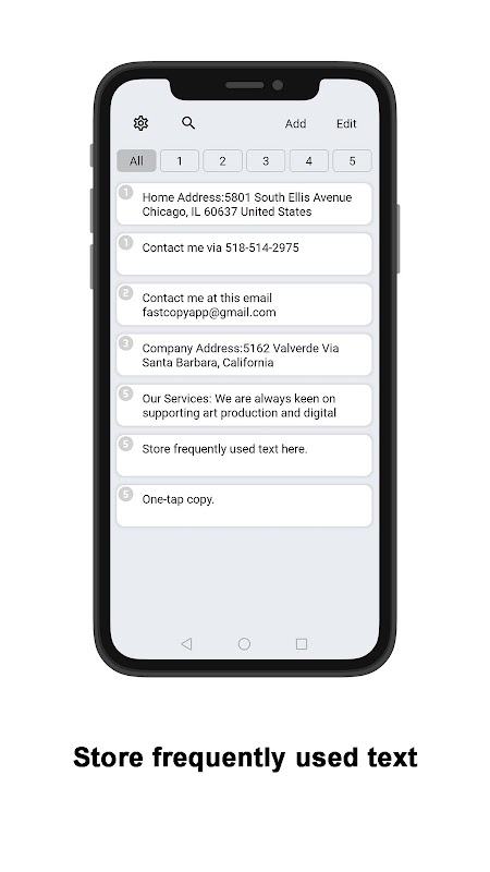 您可以在應用程序中添加文本並在每次需要時將其複製到剪貼板,而無需一次又一次地輸入。此外,您始終可以添加/編輯文本並使用特定標籤進行設置。