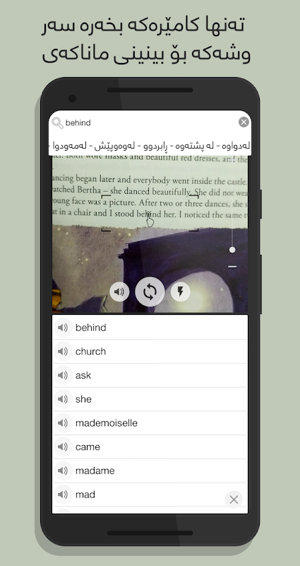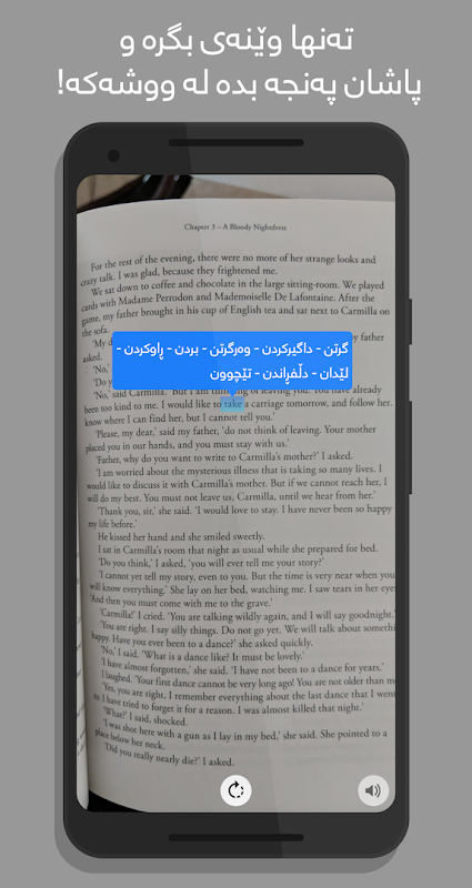2-زیادکردنیبەشێکینوێئەویشدروستبونیدوگمەیەکەلەسەرشاشەیمۆبایلەکەتکەپەنجەدەدەیتلەودوگمەیەوێنەیەکیشاشەکەتدەگریتپاشانلەهەرشوێنێکداوشەیەکیئینگلیزیهەبێتپەنجەیەکیلێدەدەیتبۆتدەکاتەکوردی。