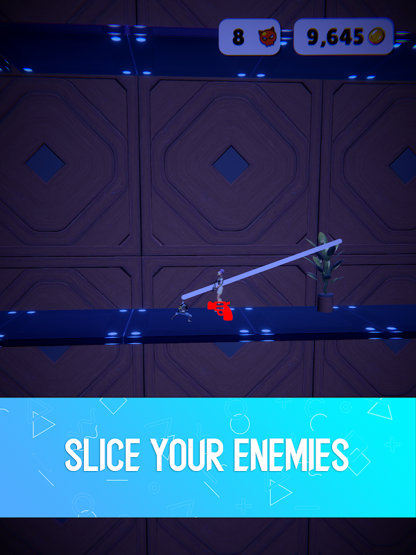 Draw a line trajectory and release to slice objects and enemies in front of you.