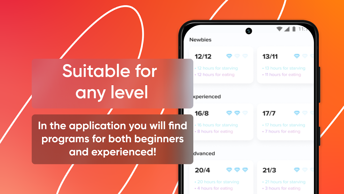 在我們的應用程序中有幾種不同的間歇(中間)禁食方法。在間歇性禁食計時器應用程序中,您可以根據自己的水平選擇貼心的禁食飲食計劃。間歇性斷食是通過斷食和進食的周期。它目前在健康和健身界非常流行。間歇性禁食應用程序免費幫助初學者。