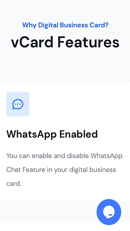 You can enable and disable WhatsApp Chat Feature in your digital business card.
