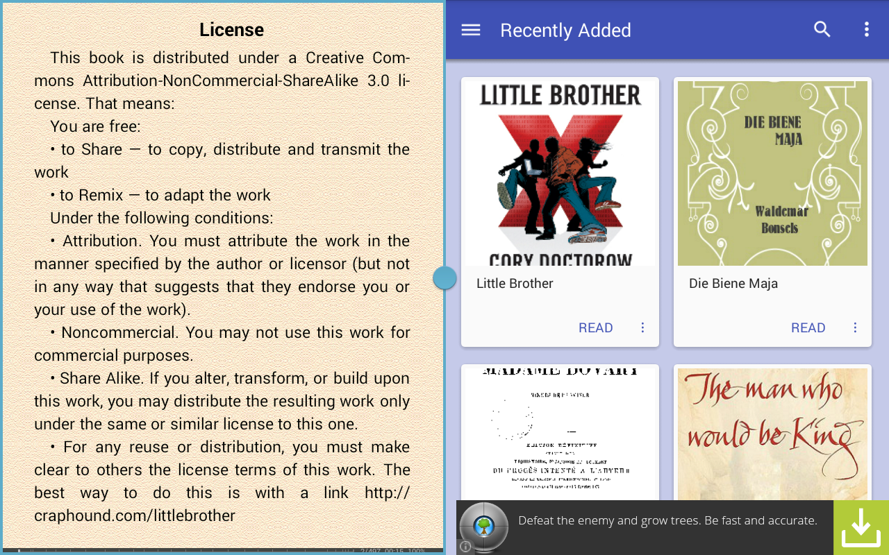 的FBReader書架的材質設計風格