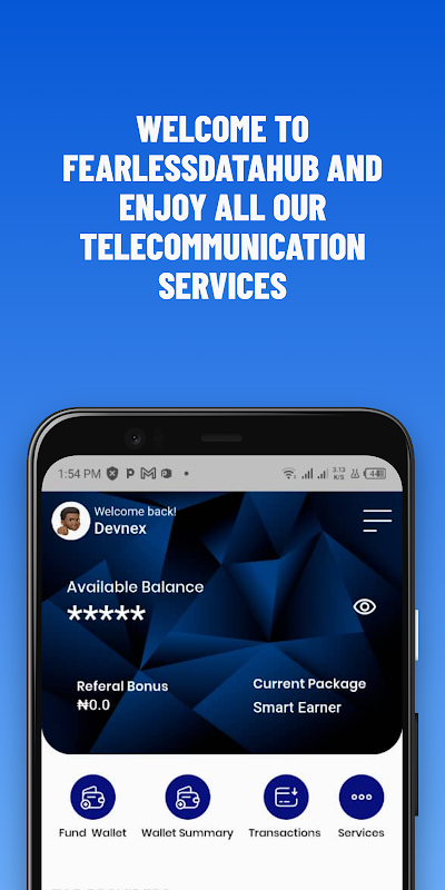 FEARLESSDATAHUB 是一家註冊電信公司,提供語音或資料傳輸服務,例如;行動數據、有線電視、電費、通話時間 (VTU)。