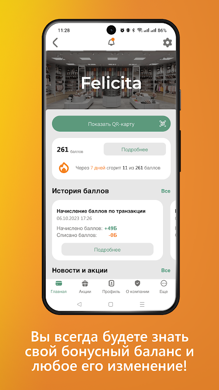 Felicita 行動應用程式是為公司客戶提供的獎勵卡。在公司付款時出示您的卡即可獲得獎勵積分。使用它們支付部分購買費用(1 點 = 1 堅戈)。直接從應用程式追蹤您的分數。隨時了解您最喜歡的公司的所有促銷、新聞和活動!