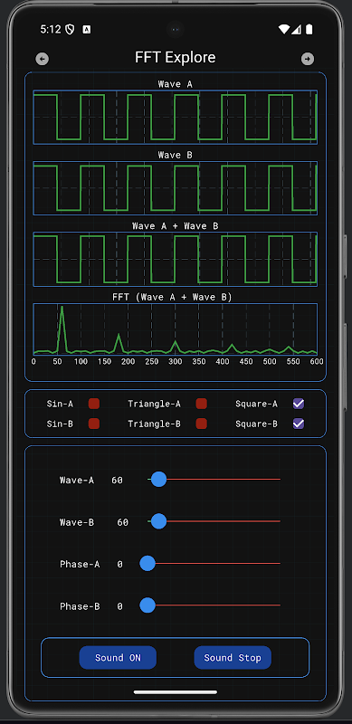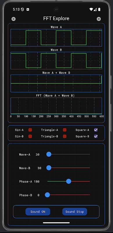這個應用程序將生成雙正弦波/三角波/方波和復合 FFT