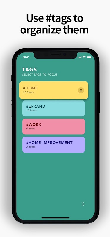 Keep your tasks organized with hashtags.