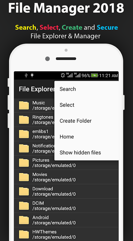 文件/文件夾訪問和管理器:-操作允許您管理文件和文件夾,以進行高級複製,搜索,保存,詳細信息,移動,重命名,刪除,隱藏,壓縮和解壓縮ZIP文件,創建加密的ZIP / Unzip文件等。輕鬆管理內置或大容量存儲。各種圖像和視頻文件類型的內置縮略圖。支持的zip,rar和iso文件,使您可以壓縮和解壓縮文件,解壓縮RAR和iso文件等等。一鍵進行全局搜索以搜索設備的所有文件夾和文件。